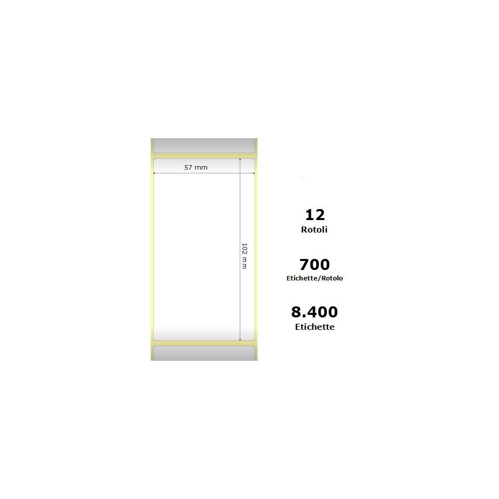 White 57x102mm,700 Et/Rotolo Z-2000D, 2.2x4x1Core, 12 Rolls